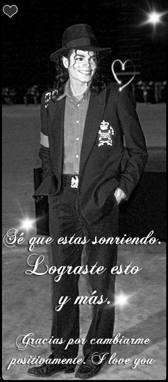 Espero que te estes dando cuenta, si, seguro te das cuenta, aunque seas tan humilde, mirandonos desde TU paraiso, debes sentirte tan orgulloso, de tus fans, de esa gente que te admiro y siempre lo hará, que al fin toman fuerzas, y continuan, ayudan y seguimos con ese legado que vos nos dejaste. Gracias por esto y más Michael, gracias por lo que lograste, lo que tenemos, y lo que vamos a lograr todos juntos. Basta :) me emociona demasiado. Y al hombre de la foto, lo amo muchisimo ♥